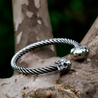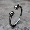 Two skulls, one statement—you’re untouchable. The coiled steel wraps your wrist like armor, a symbol of resilience in a world that never stops testing you.